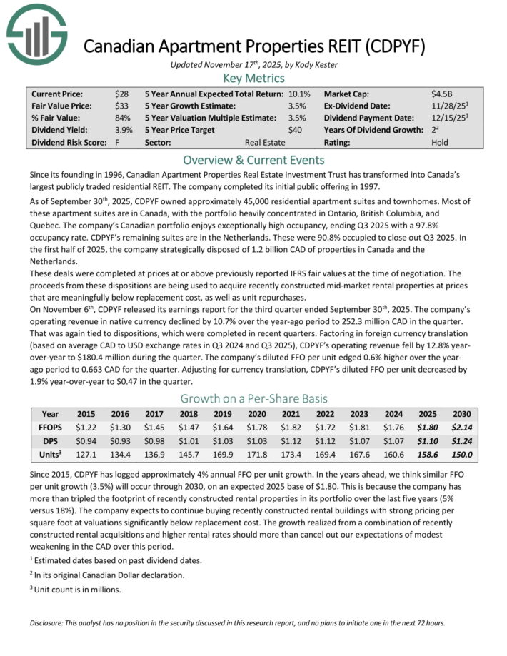 The corporate’s Canadian portfolio enjoys exceptionally excessive occupancy, ending Q3 2025 with a 97.8% occupancy charge. CDPYF’s remaining suites are within the Netherlands. These had been 90.8% occupied to shut out Q3 2025.