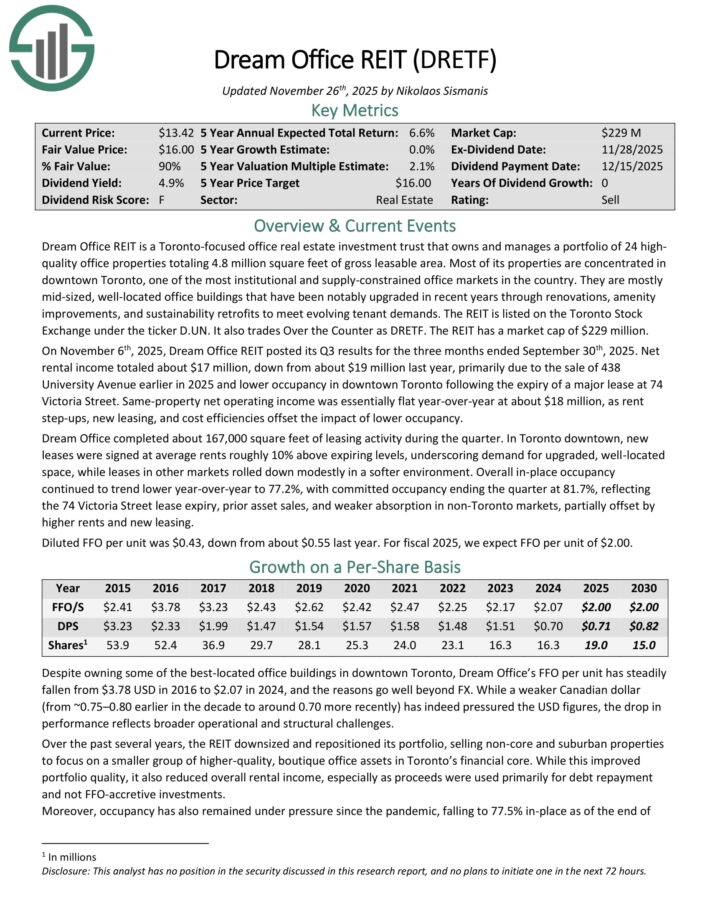 The REIT is listed on the Toronto Inventory Trade beneath the ticker D.UN. It additionally trades Over the Counter as DRETF.