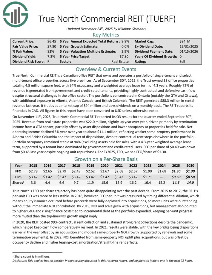 On November eleventh, 2025, True North Business REIT reported its Q3 outcomes. Income from actual property properties was $22.0 million, barely up yr over yr.