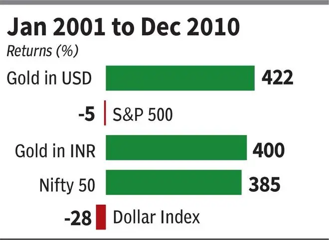 Therefore, this was an uncommon decade the place despite a deluge of liquidity, inflation was low. It was a wonderful decade for equities, whereas gold underperformed in USD phrases though beating inflation solidly with its 34 per cent returns.